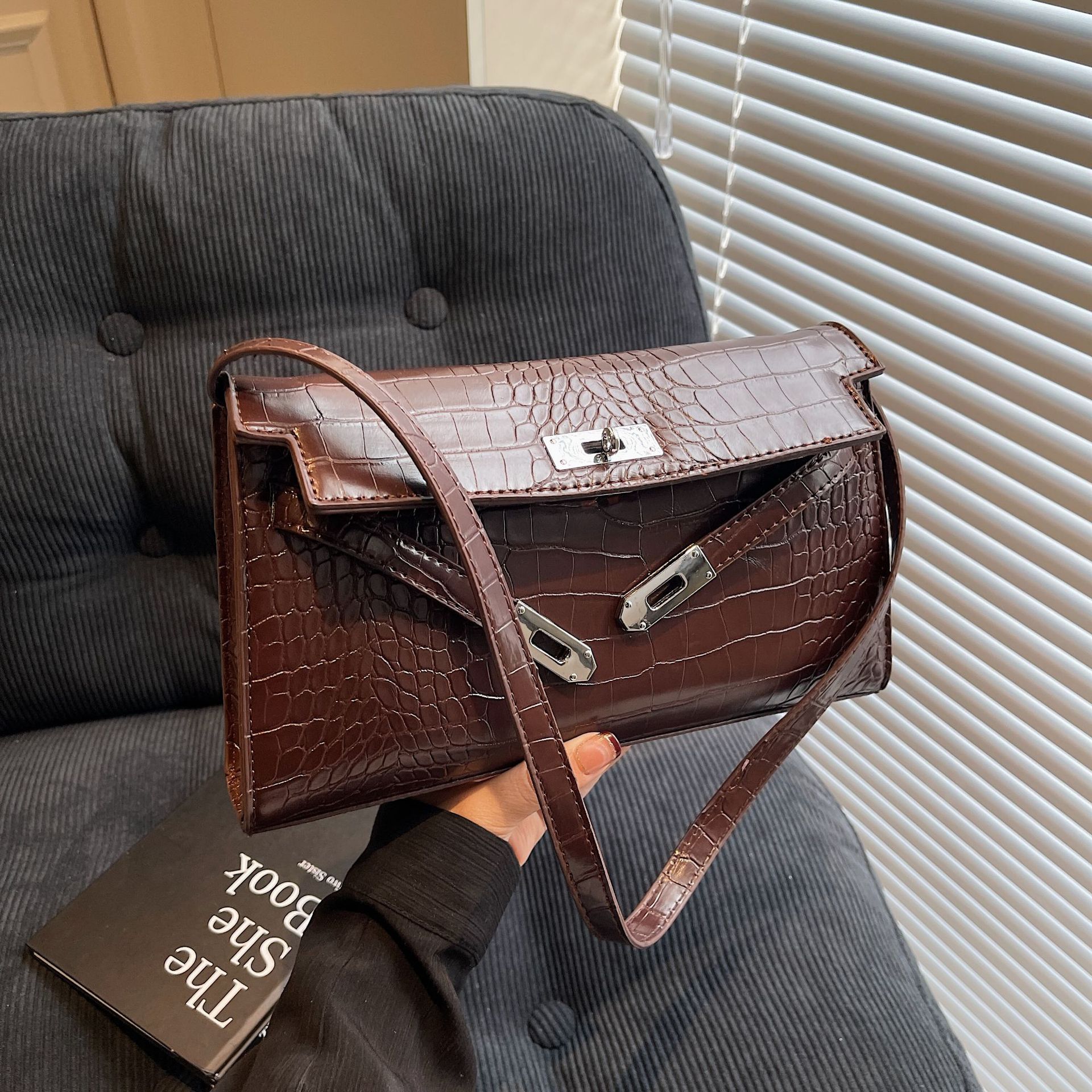高級感のあるワニの紋様のケリーはレトロなハイエンドのbagsを包んでロックします。