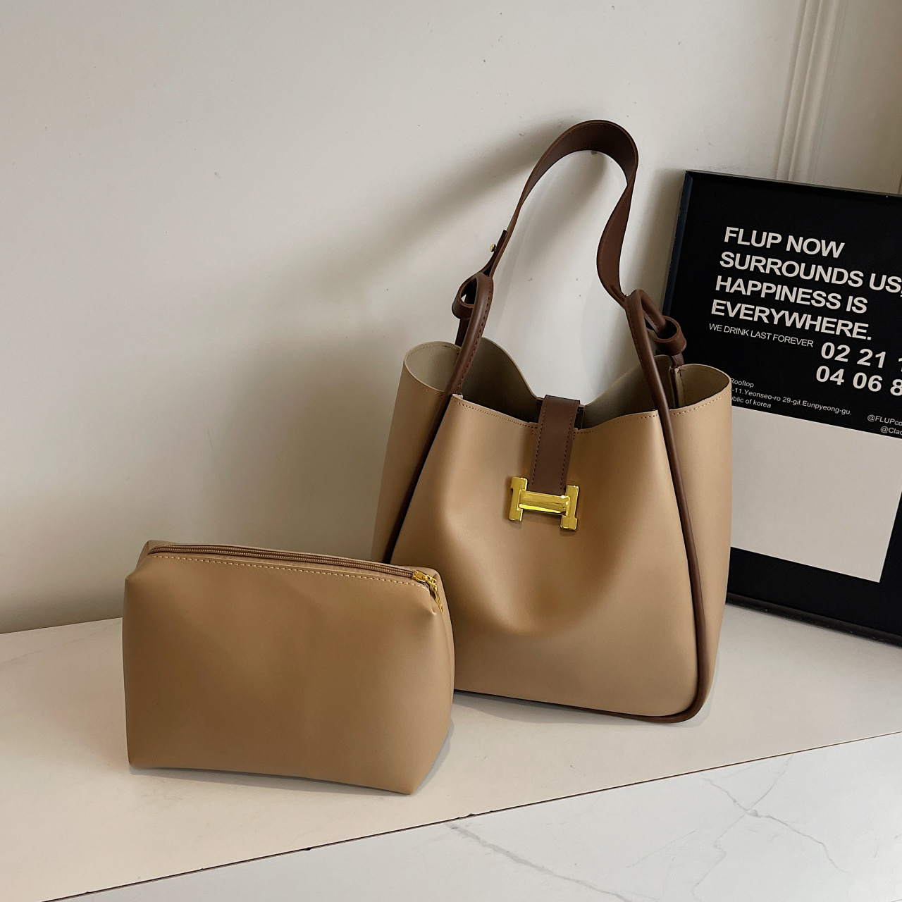 レトロ高級感大容量子母バッグH金属バックルbags通勤百合潮シングルショルダーバッグ腋の下バケツバッグ