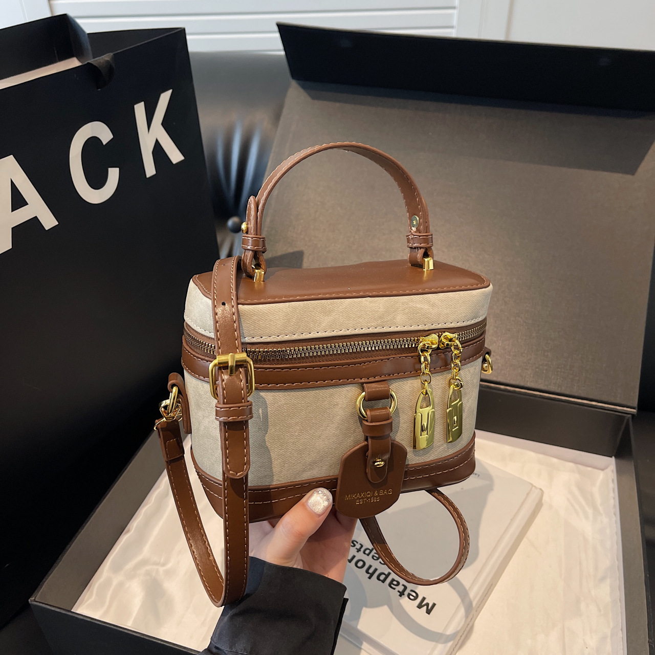 高级感ミニバッグレディース2023新品おしゃれシングルショルダーバッグ洋风手提げブラックキャリーバッグミニ