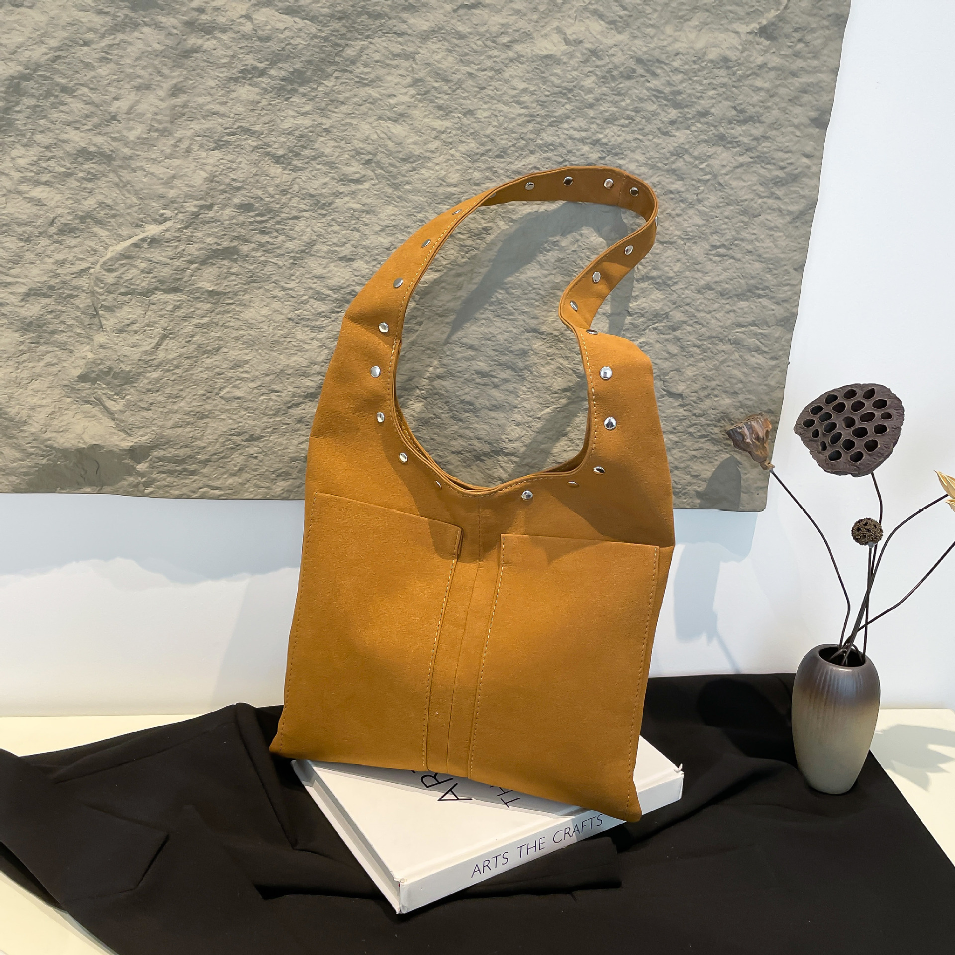 国境を越えたリベットのベルベットの腋の下のバッグins潮欧米の通勤は対外貿易bagsレトロなシングルバッグをつなぎ合わせた