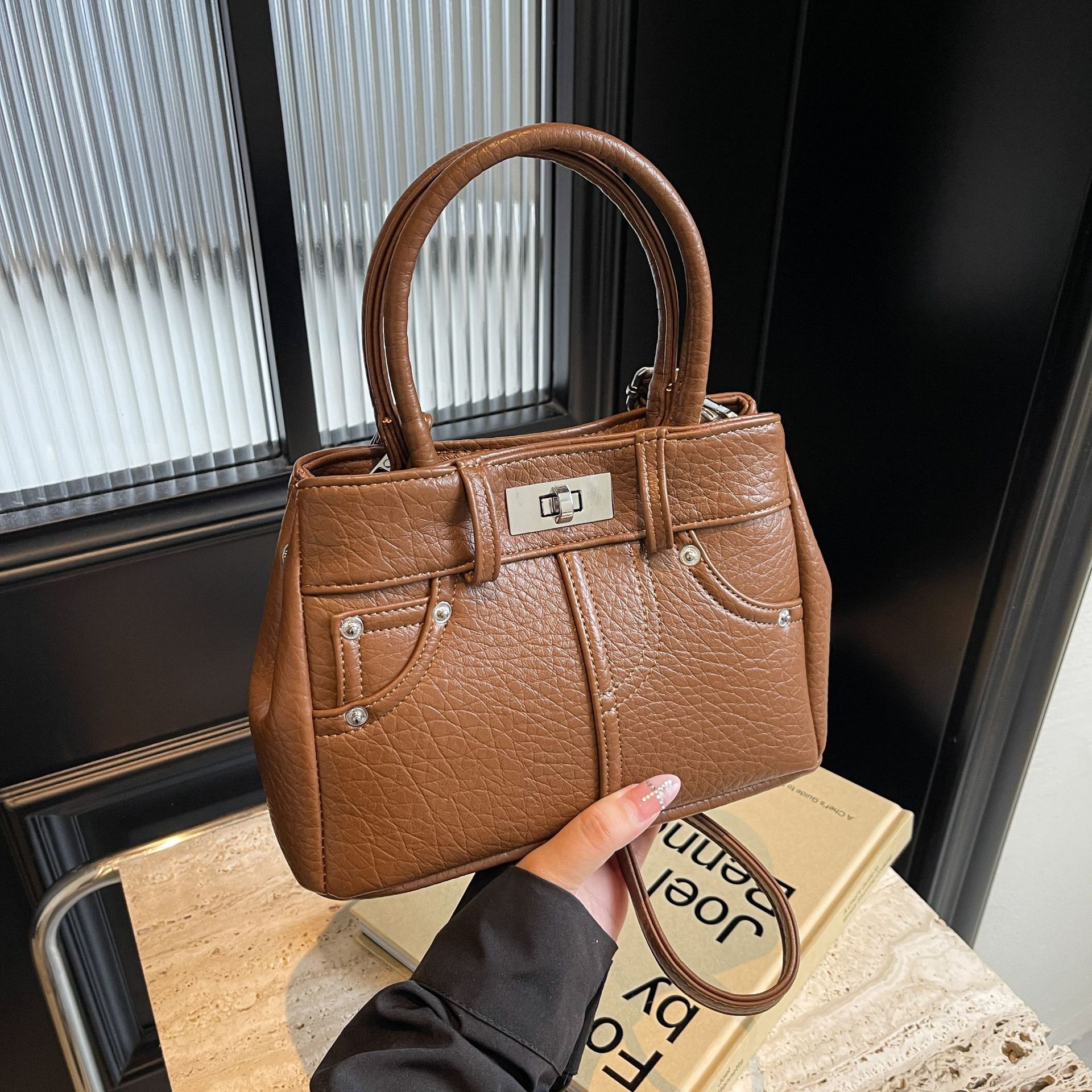 ソフトモチpu質感ケリーバッグシンプルな通勤ハンドバッグバッグ2024韓国系ロックファッションシングルショルダーバッグ