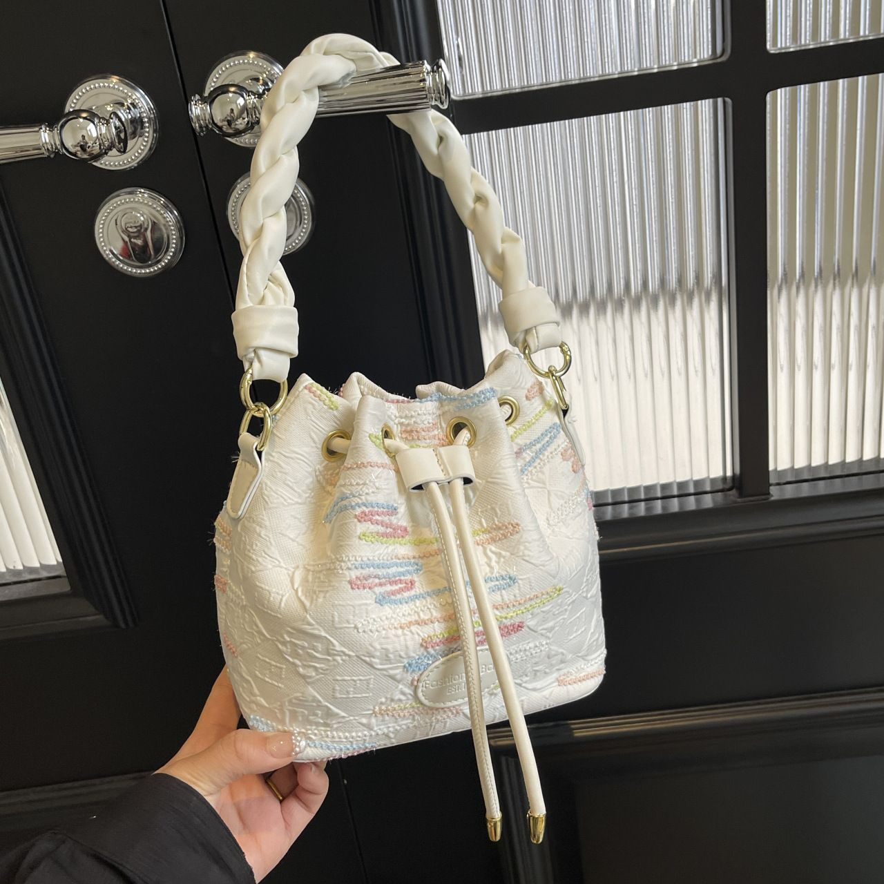 韓国版で人気のある人気のキャンバスのバケツバッグ女性カラーのしわファッションシングルショルダーバッグ
