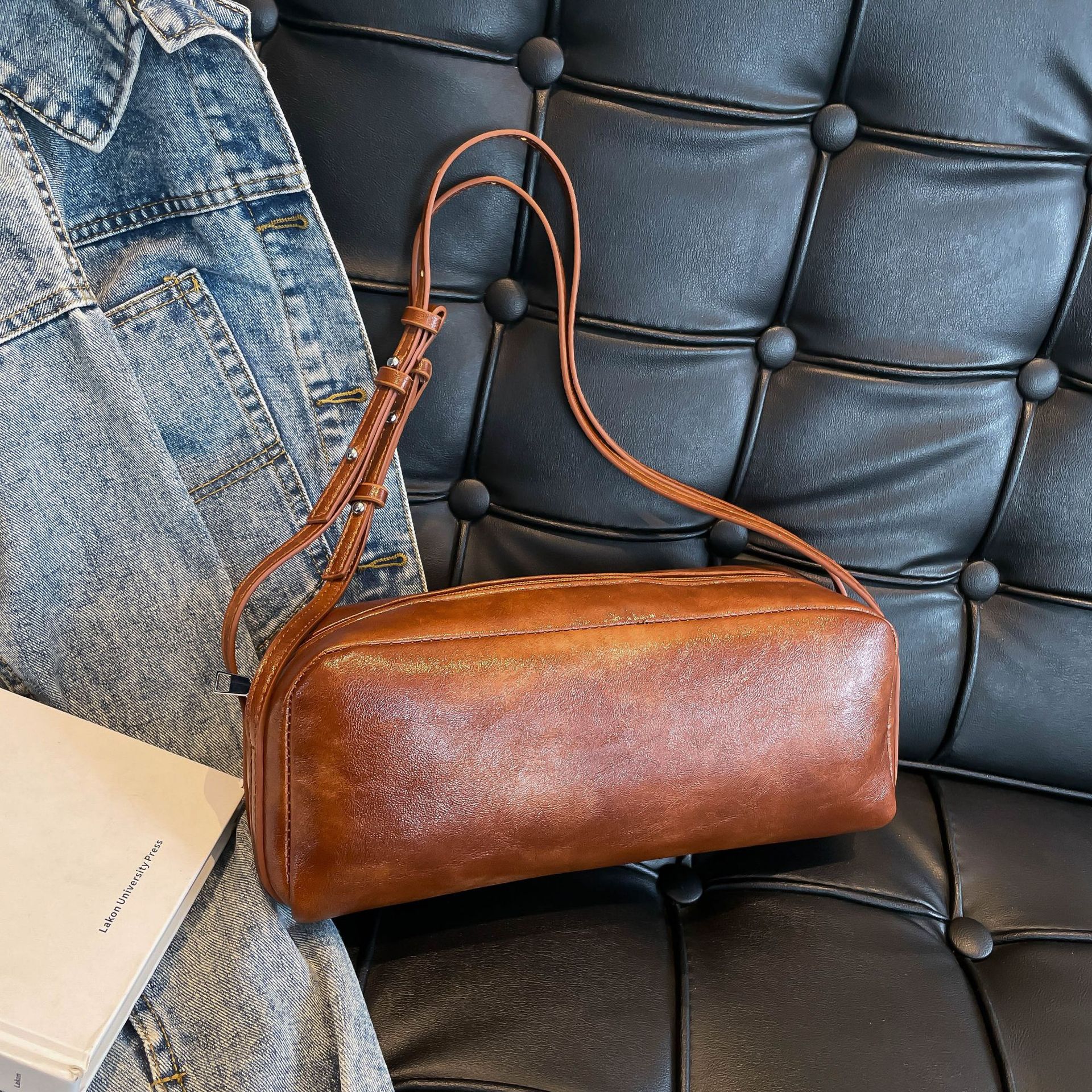 クロスボーダー2024ワックス皮ins腋の下バッグ高級レトロセット色斜めショルダーバッグ大容量通勤法棒バッグ
