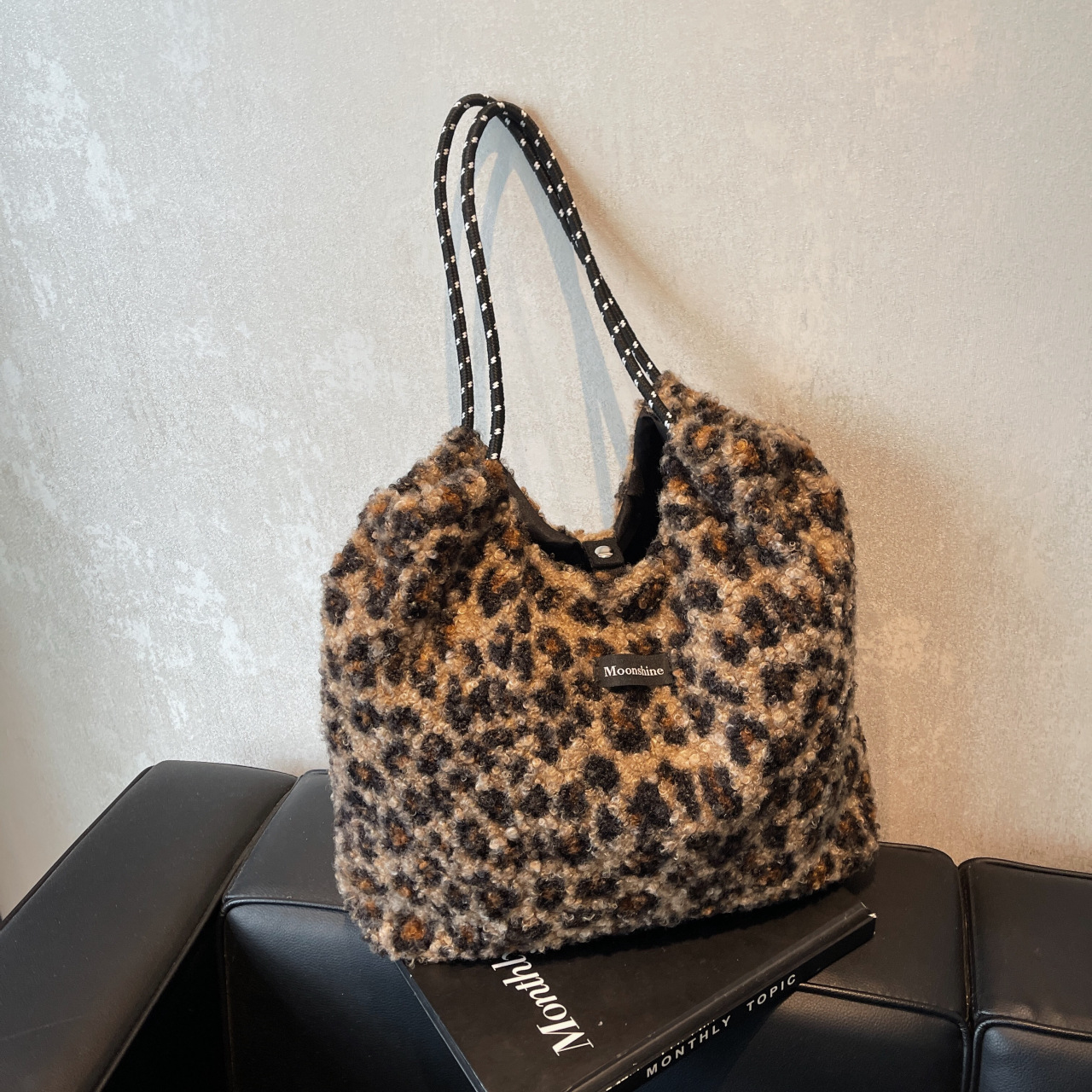 クロスボーダーの子羊の毛のヒョウの紋様は縄のシングルショルダーバッグのbagsの復古の怠惰な風の手提げの特包の大容量の斜めのショルダーバッグを引き出します。