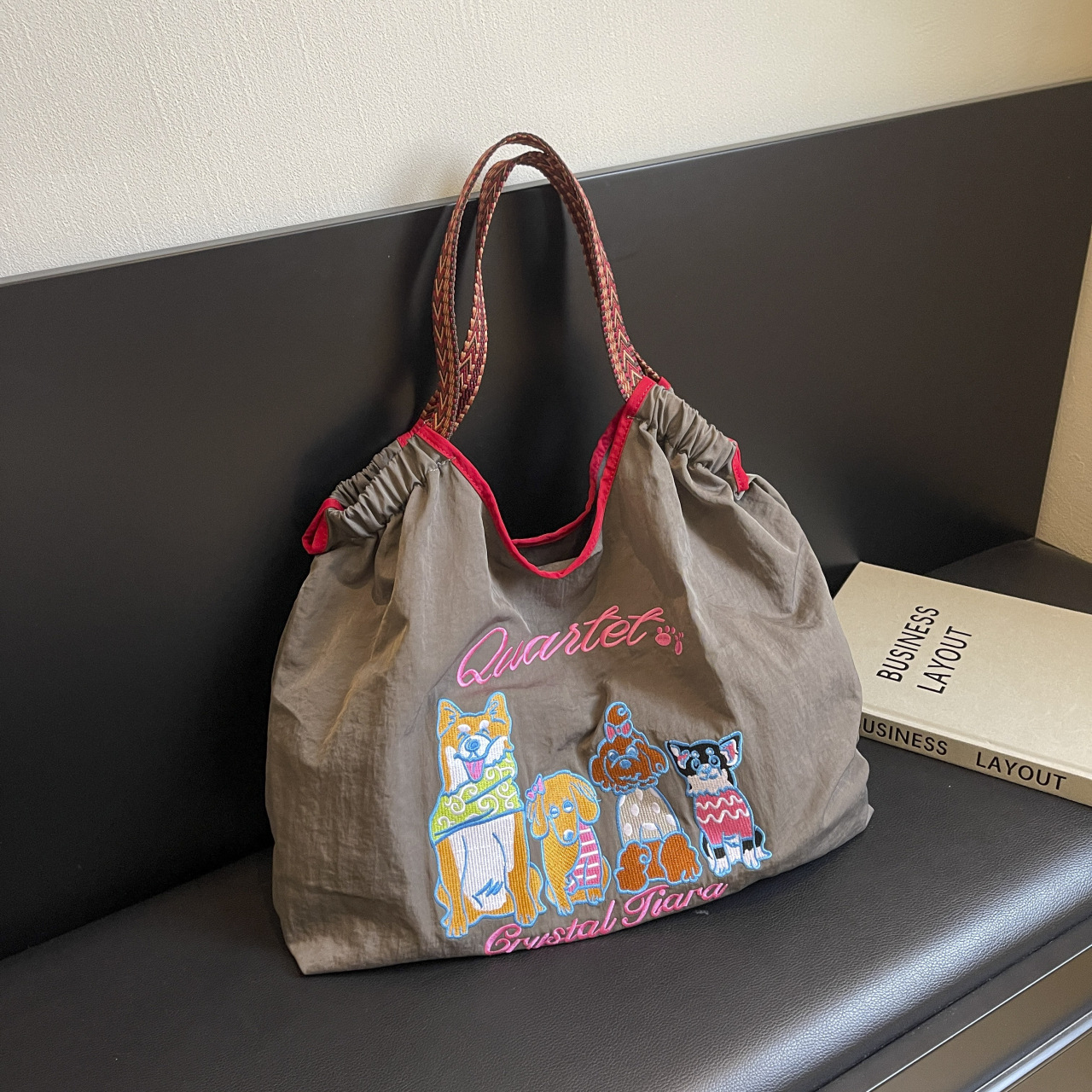 日本と韓国の猫柴犬ボールチェーン刺繍布バッグ女性の大容量新しいナイロンポータブル多用途ショルダーバッグ