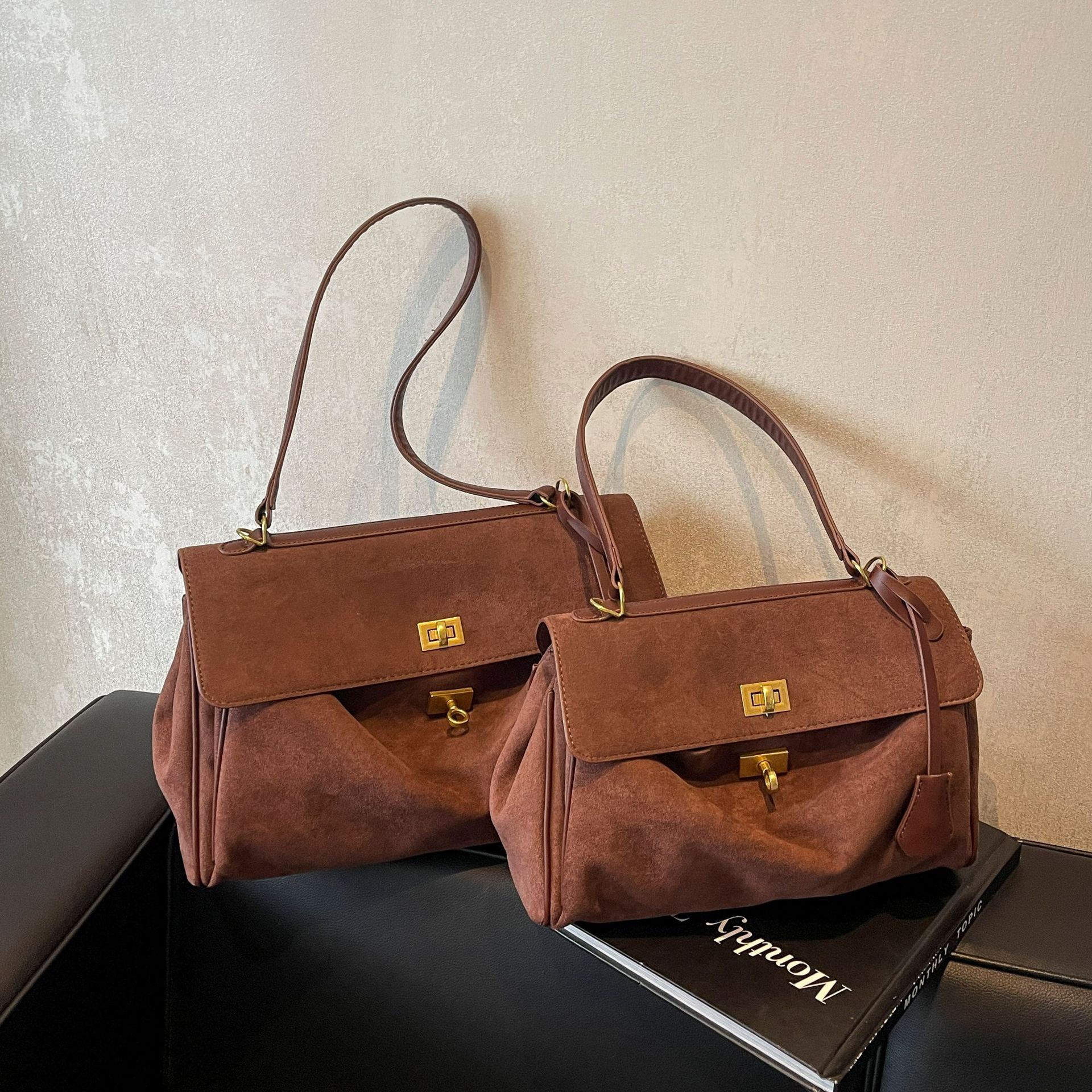 レトロなハンドバッグの龍bagsは、フロストしたスエードの大容量のトートバッグ秋冬の通勤ショルダーバッグの女性バッグです。