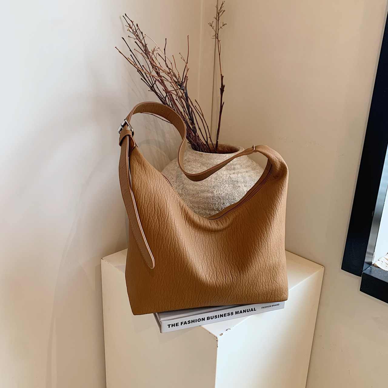 国境を越えたしわシングルショルダーバッグinsシンプルで柔らかいモチモチとしたトートバッグ純色大容量通勤脇下バッグ斜め掛け女性バッグ