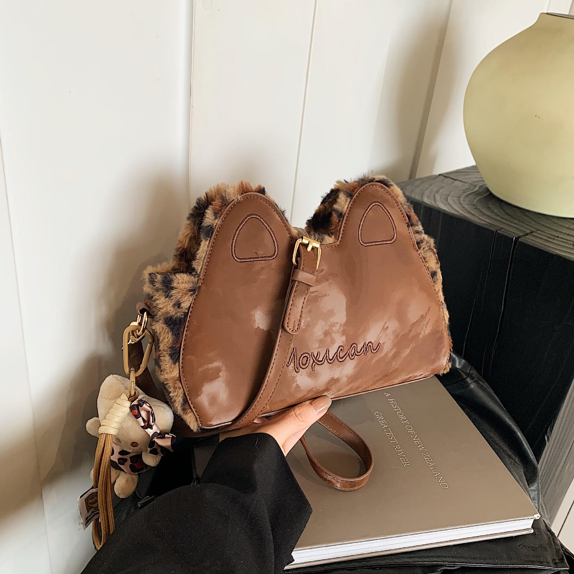 小衆が子羊の毛をデザインして腋の下のバッグをつなぎ合わせたのは2024冬のシンプルな通勤洋風の個性的なカジュアルな衝突色のショルダーバッグです