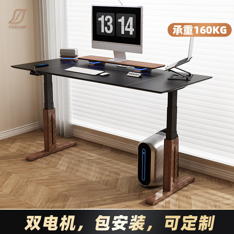 2FXT 無垢材電動昇降テーブル調節可能なスタンディングワークベンチホームコンピュータオフィス学習デスク