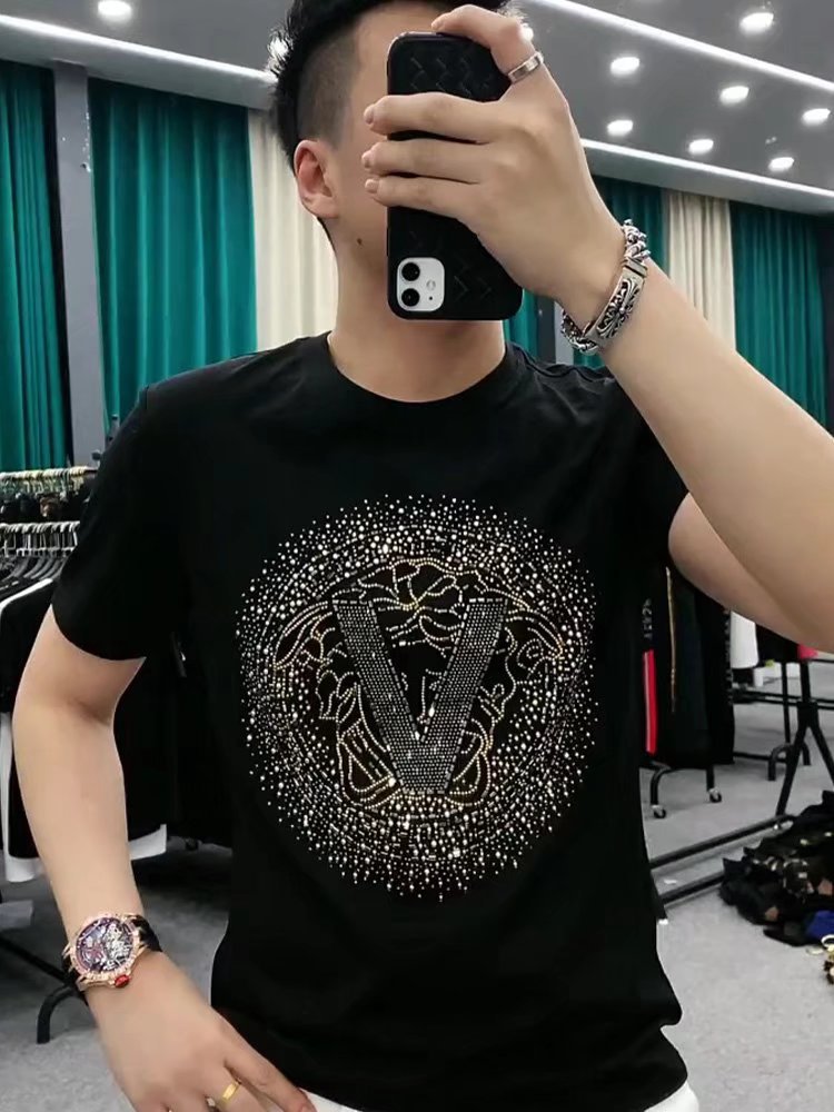 純綿ヨーロッパ駅半袖tシャツ男2022新ファッションブランドゆるいinsホットドリル文字軽贅沢服ファッション
