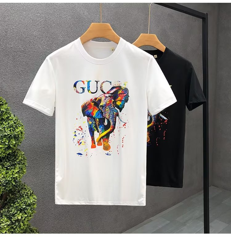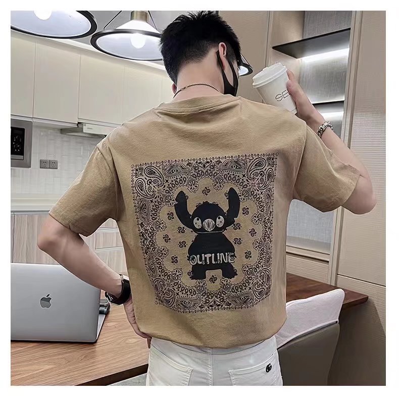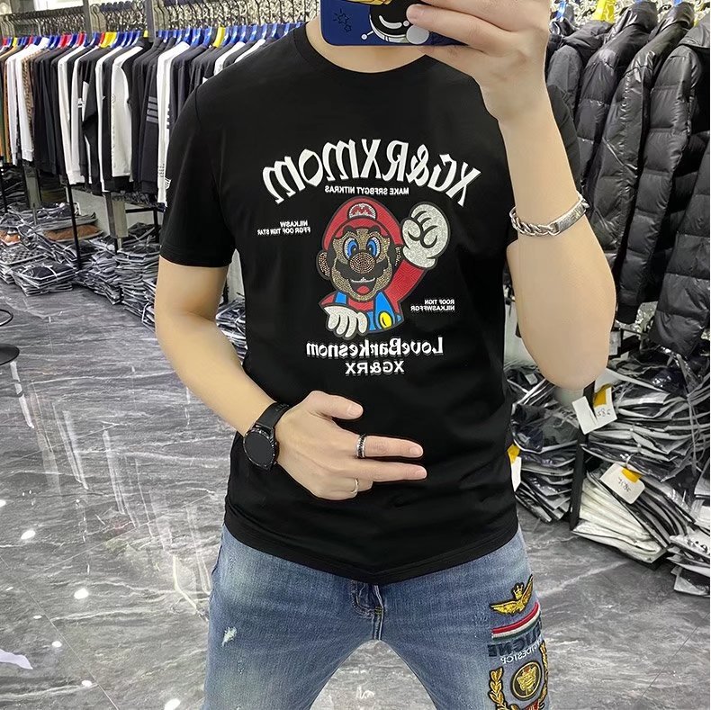 軽豪華潮牌流行純綿半袖男夏潮男丸首プリント修身tシャツ青年カジュアルシャツ