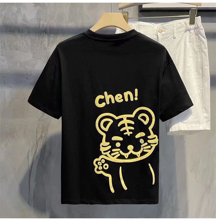欧品の漫画の趣味の小さいトラのプリントの半袖の個性のカジュアルな通気の潮流のtシャツの夏の紳士服の丸首の上着
