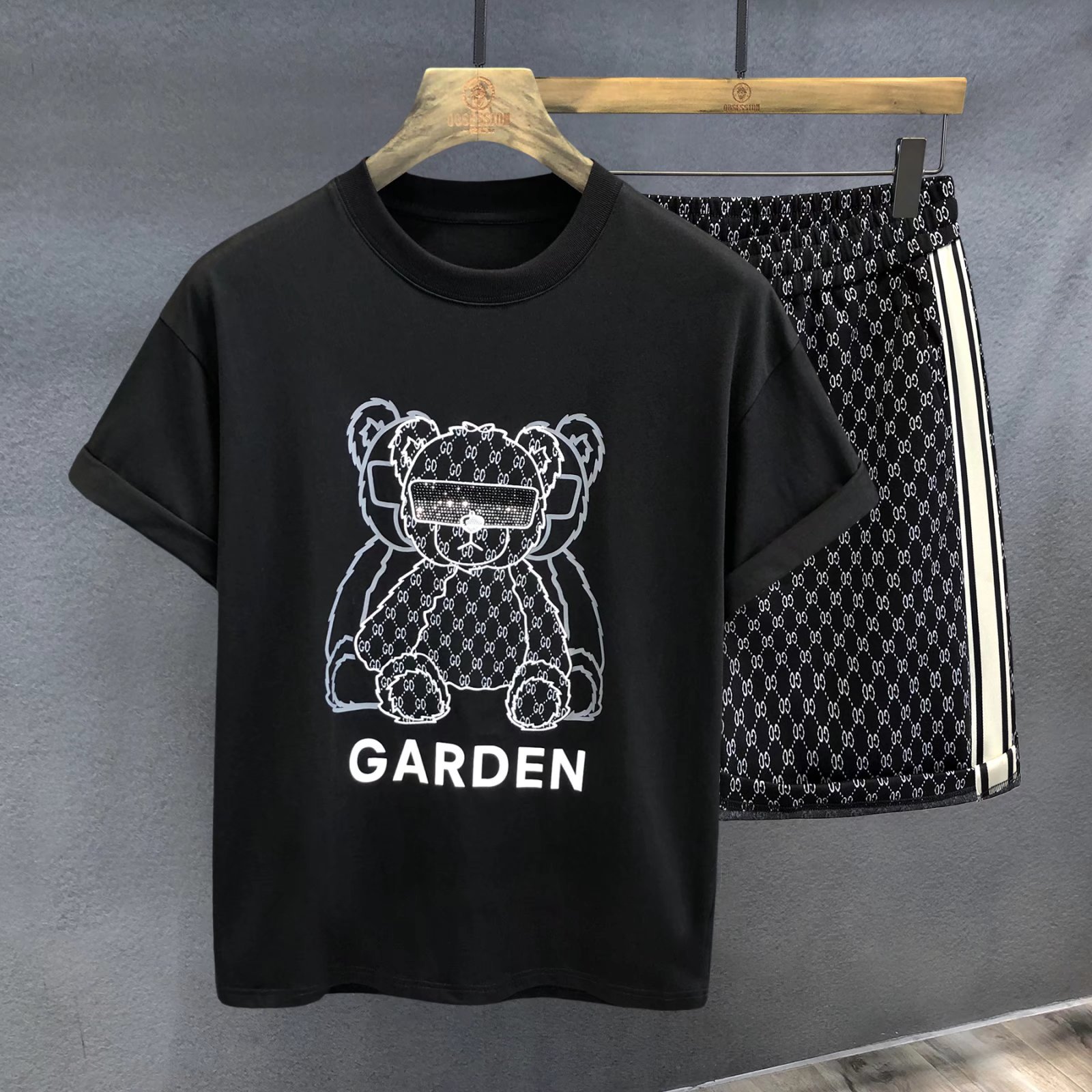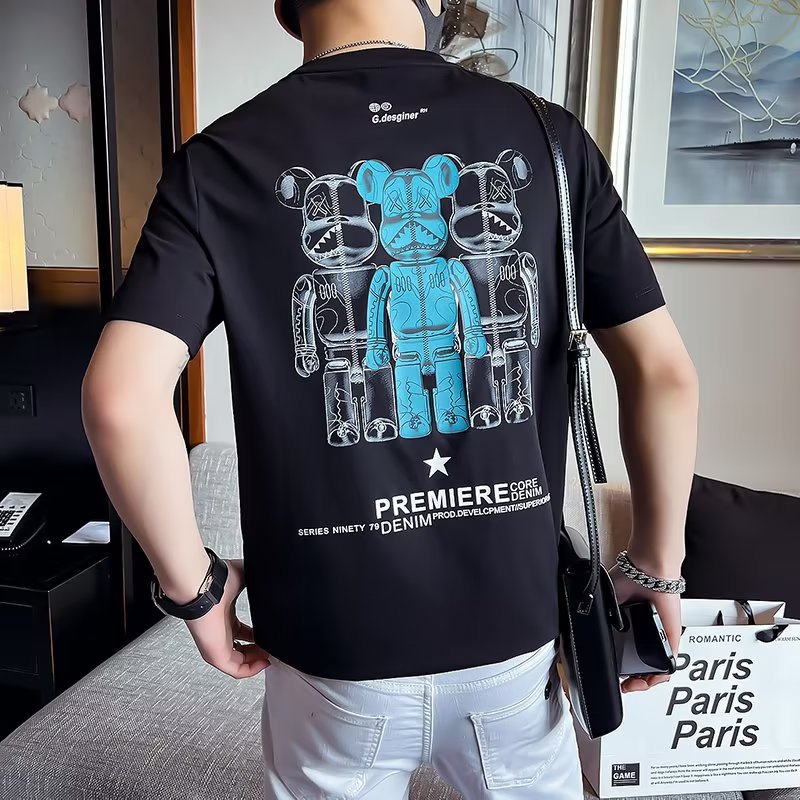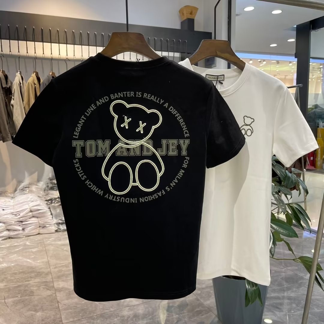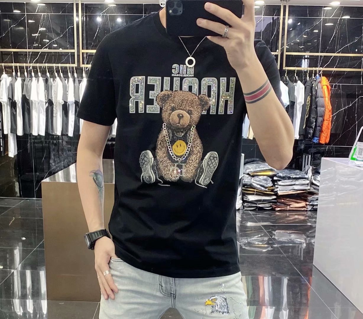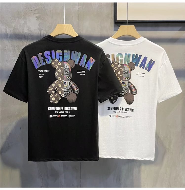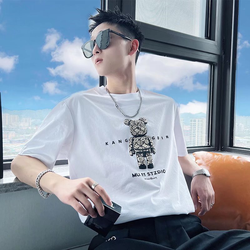 軽豪華熊ins高級感潮牌ファッションスポーツカジュアル半袖男性夏ホットドリル上着純綿tシャツ