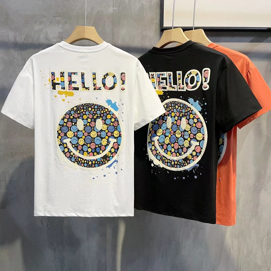 笑顔柄半袖上着男夏新作ゆるいカップル半袖カーディガントレンドins丸襟tシャツ
