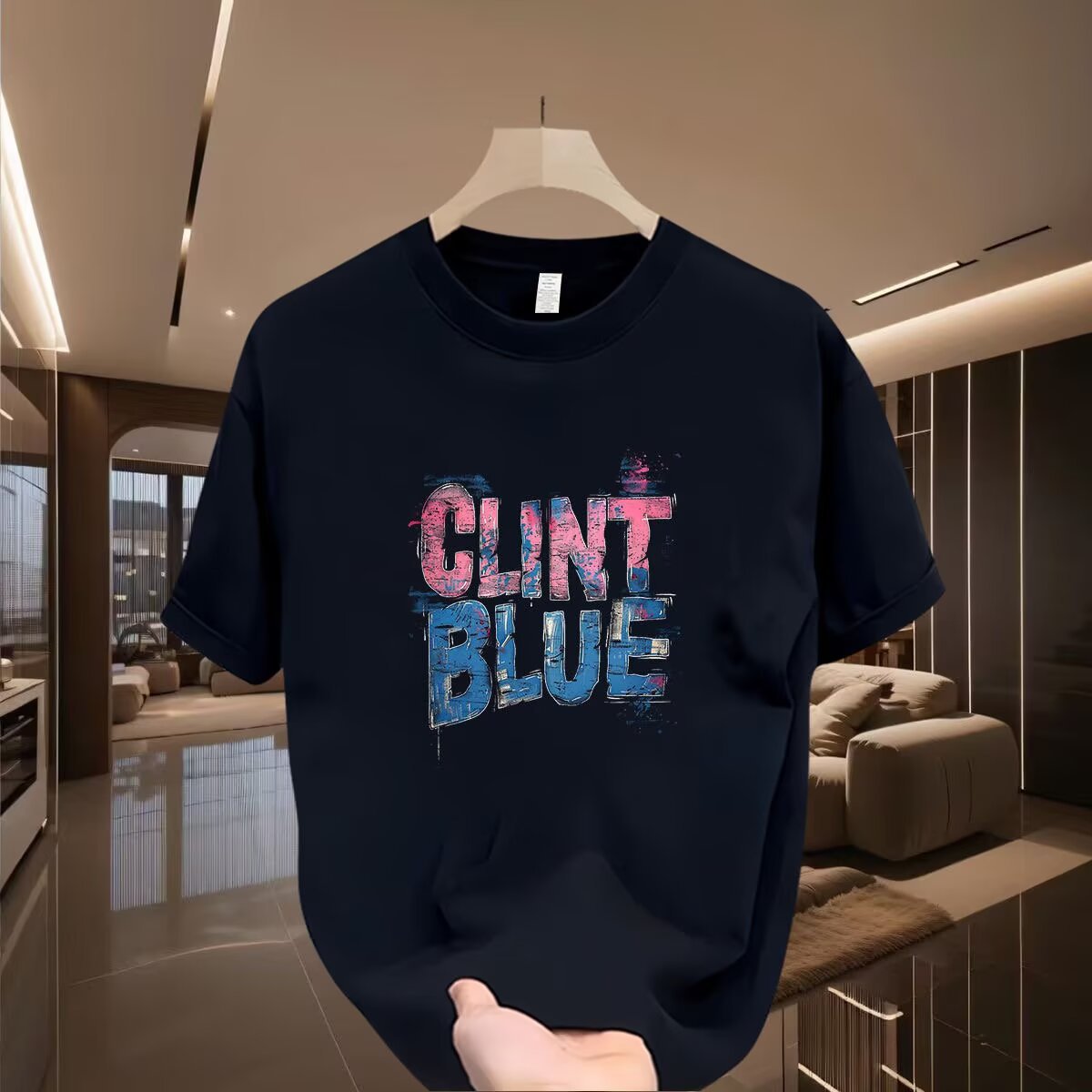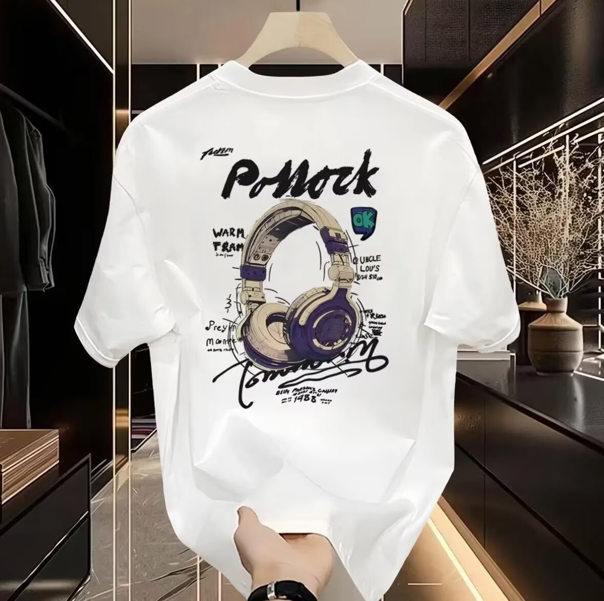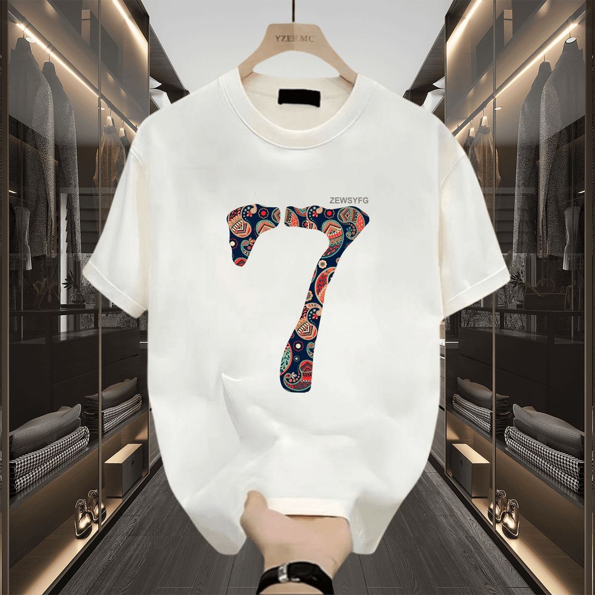 ヨーロッパステーションメンズプリントラウンドネック半袖T2025夏の新しいトレンディなスリムメンズ快適なカジュアルTシャツ男性用