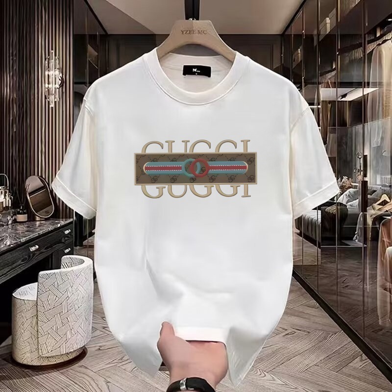 ライトラグジュアリートレンドレタープリント半袖メンズ夏高品質純綿ラウンドネックTシャツ韓国版スリムボトムシャツ