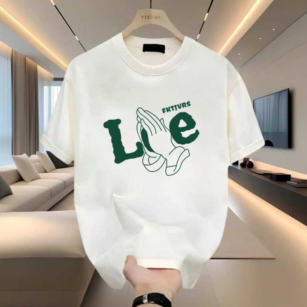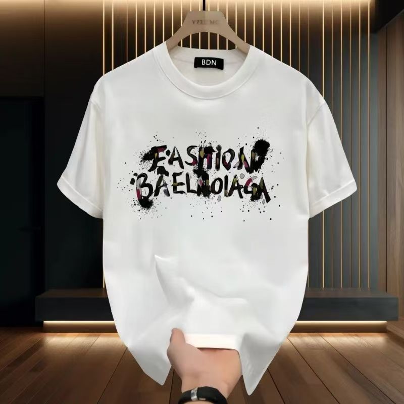 ヨーロッパステーション夏の新トレンドレタープリントラウンドネック多用途Tシャツメンズカジュアルボトムス半袖Tシャツトップス男性用