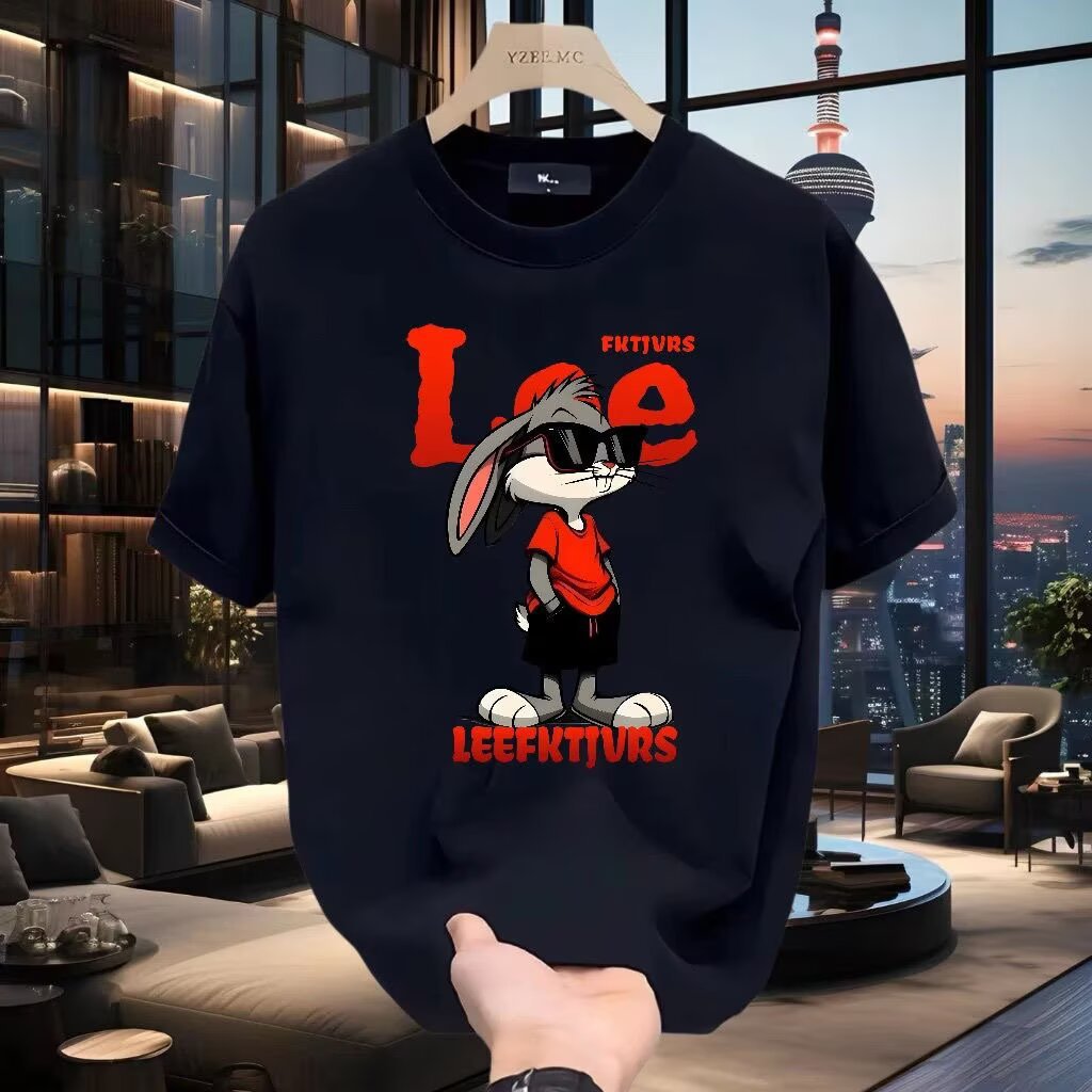 2025 夏の新ファッションブランド漫画ヨーロッパプリントメンズ半袖 Tシャツアメリカンスタイルカジュアル通気性半袖