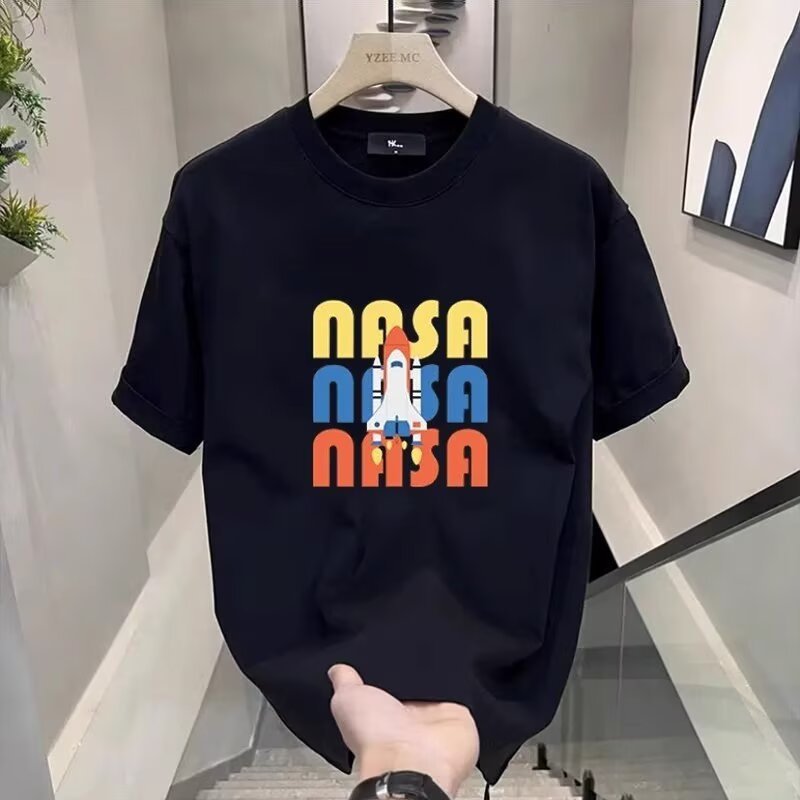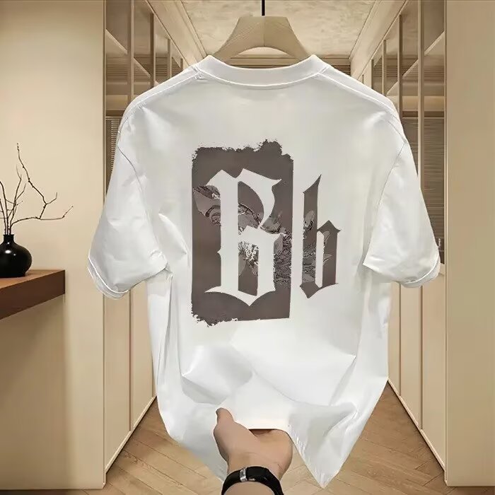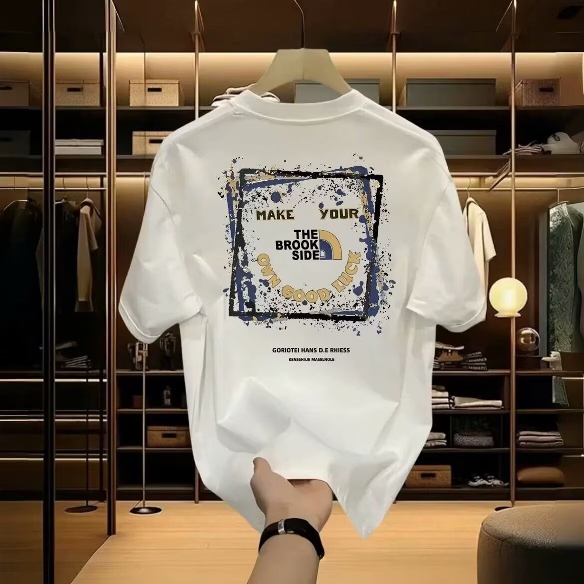 ヘビーウェイトコットントレンディブランドクリエイティブファッションTシャツシンプルレタープリントメンズ夏ラウンドネックカジュアル半袖Tシャツ紳士服
