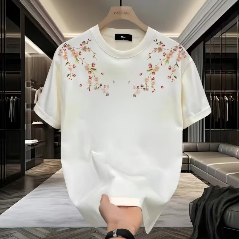 2025夏の新型プリントカジュアル高級男性半袖tシャツ夏の半袖tシャツがゆったりしています。