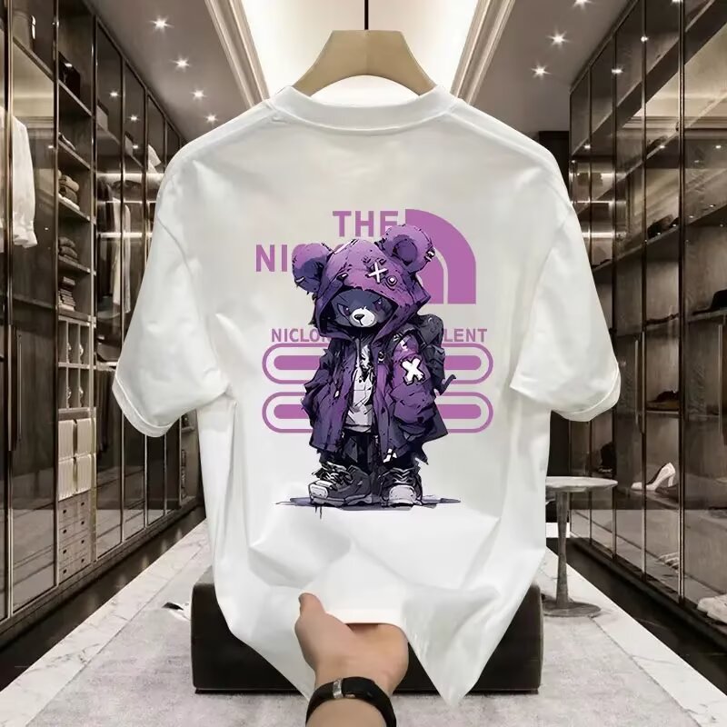 高級アニメtシャツ男性潮牌修身夏上着2025新型男性丸首青年半袖イケメン