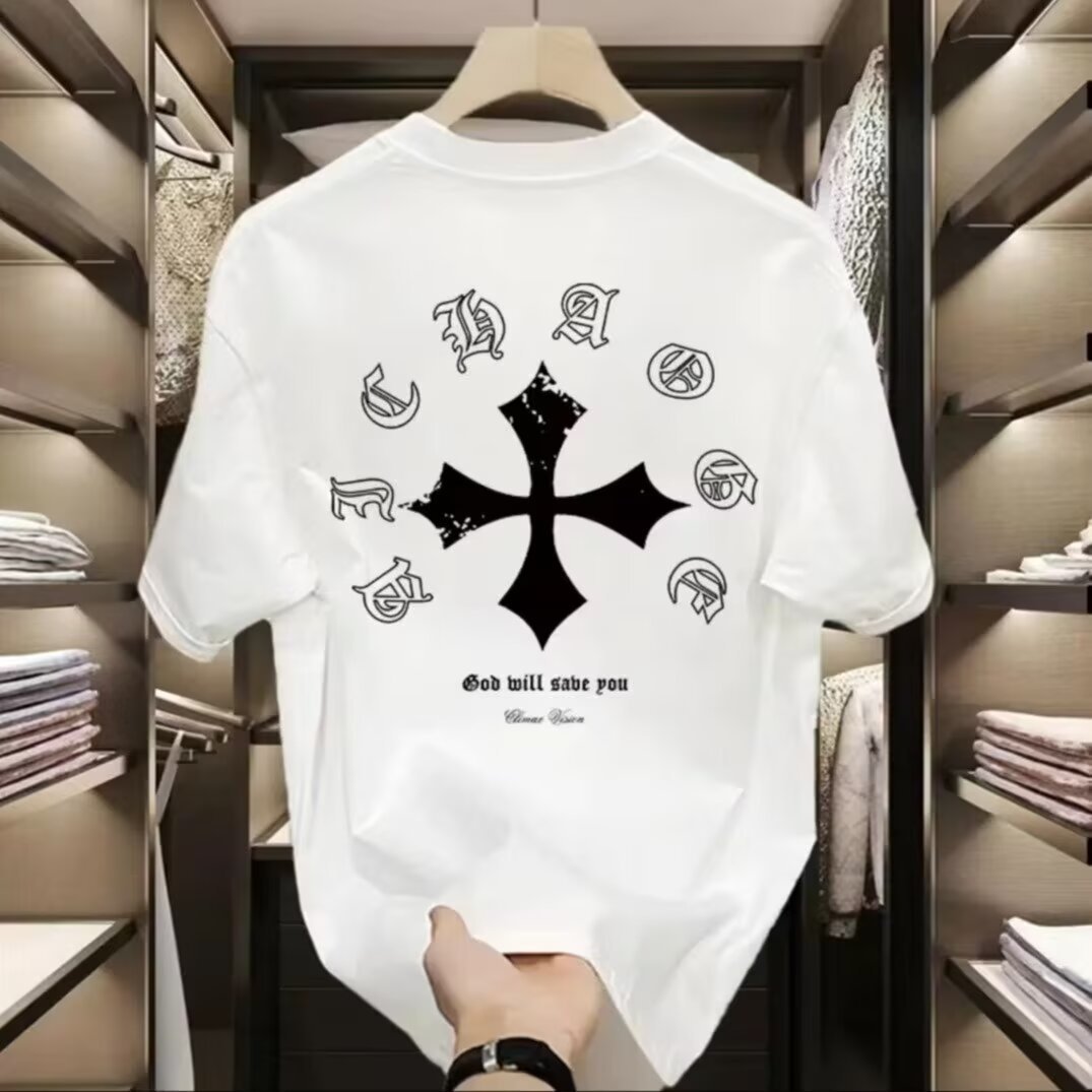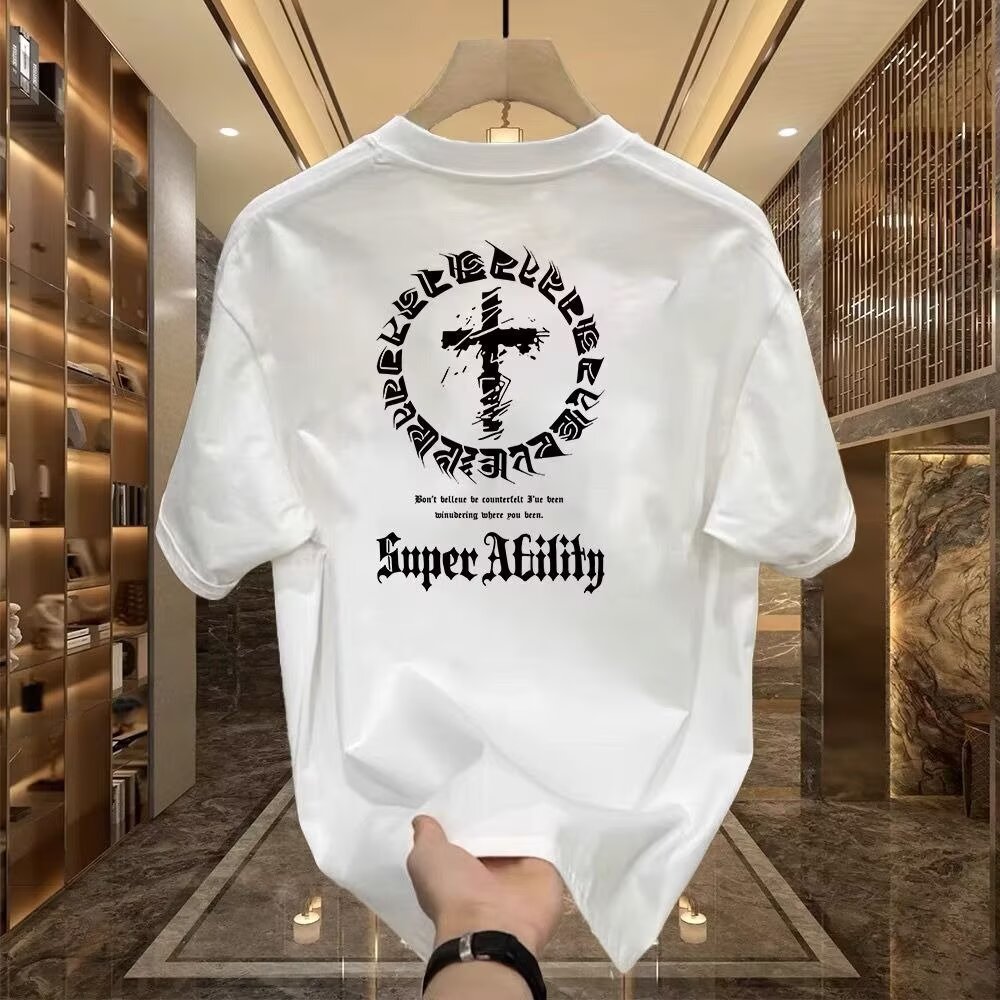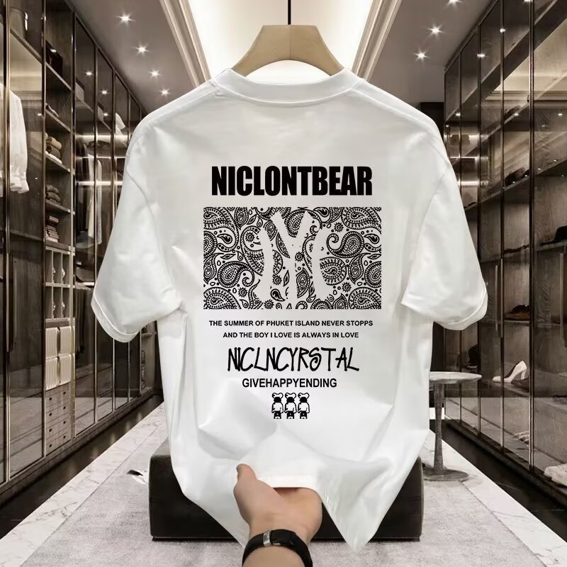 半袖Tシャツメンズトレンドブランド夏ルーズ五分袖2025新作ネットセレブトレンドインシンプルプリントトップス