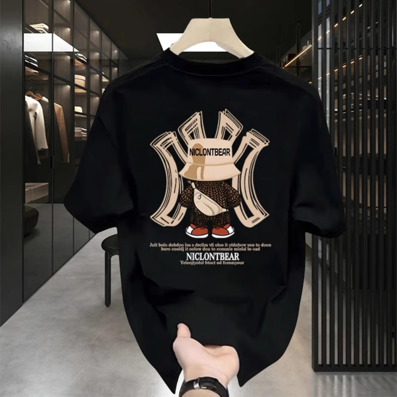 2025新型モンスタープリントカジュアル半袖tシャツ男性夏2025新型重ポンドtシャツトレンド男性t