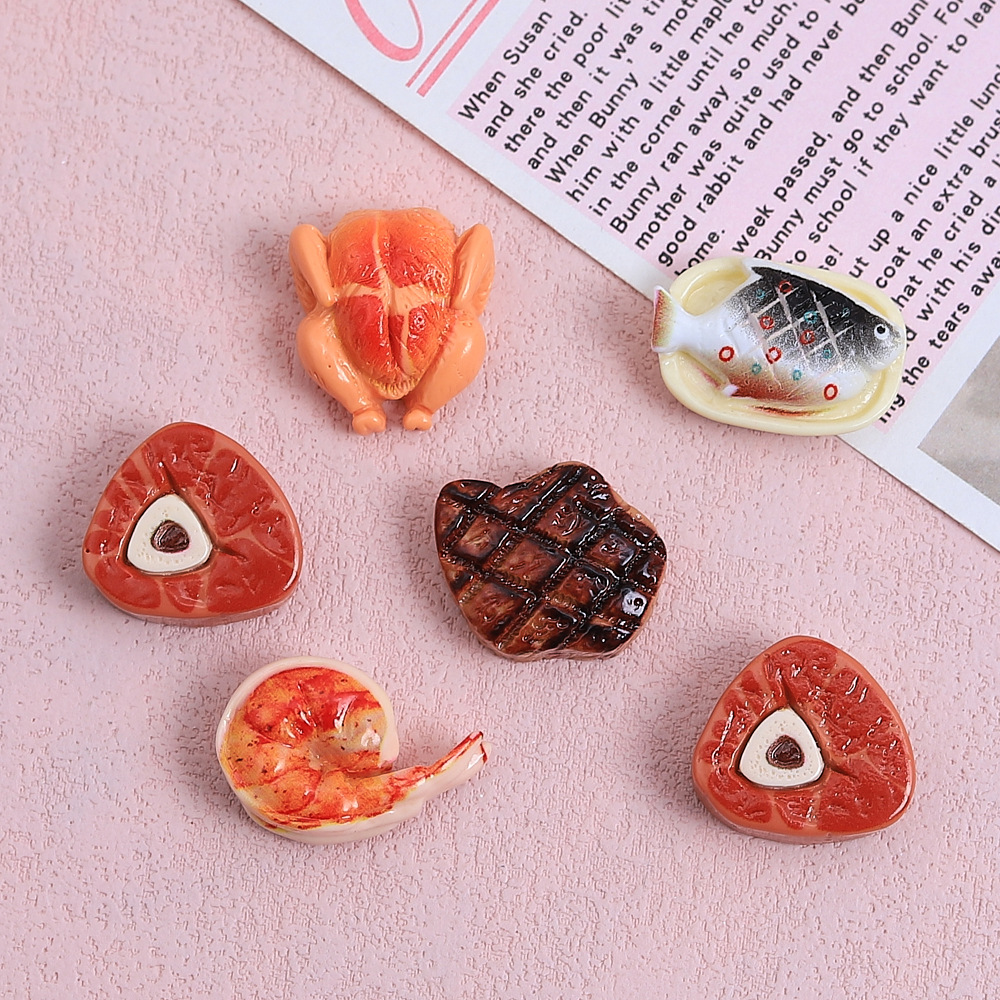 漫画風焼き魚焼き鶏のおもちゃ、クリエイティブな手作りDIYクリーム接着剤樹脂アクセサリー、小物、装飾材料卸売