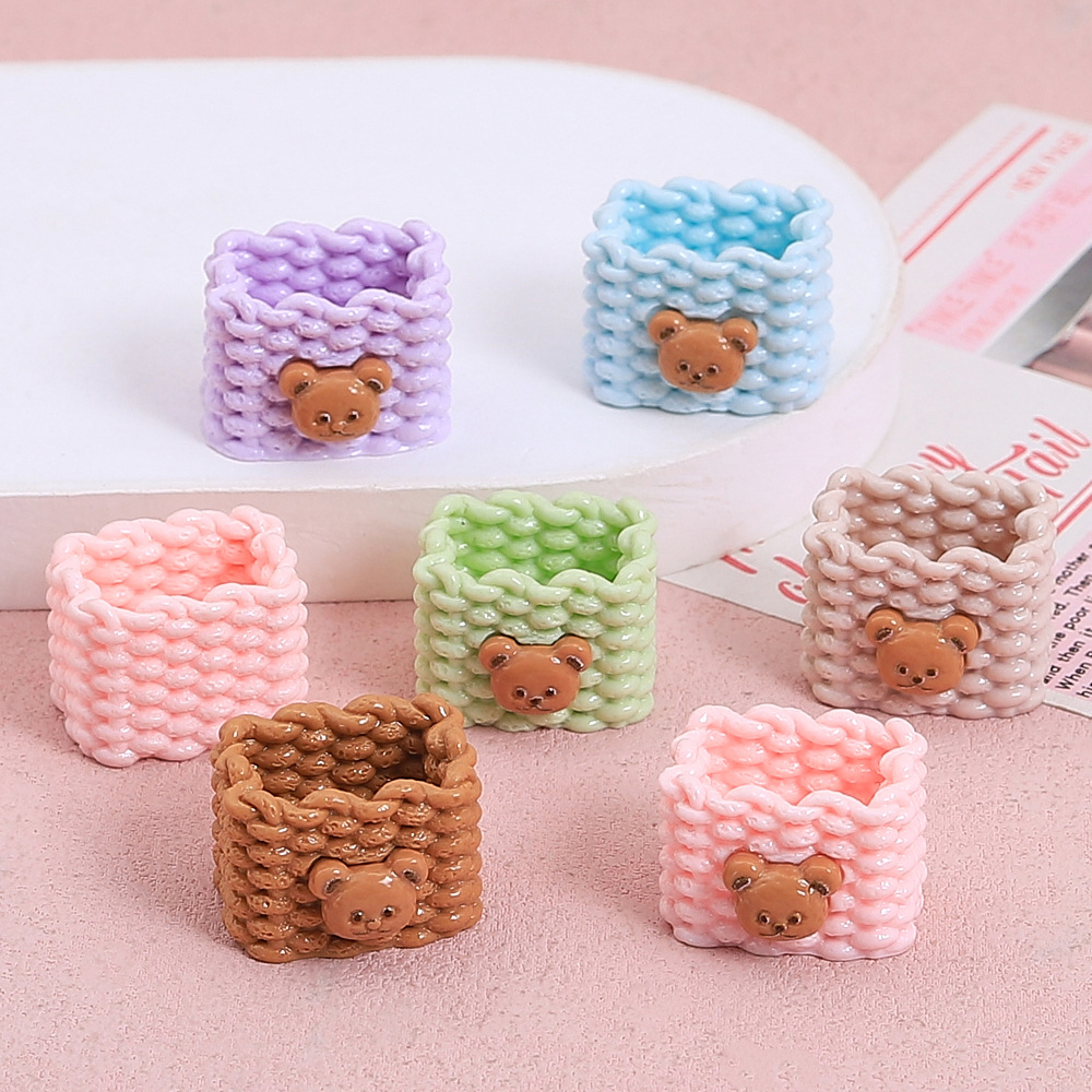 マルチカラークマ立体バスケット漫画手作り diy クリーム接着剤樹脂アクセサリー小物アクセサリー材料卸売