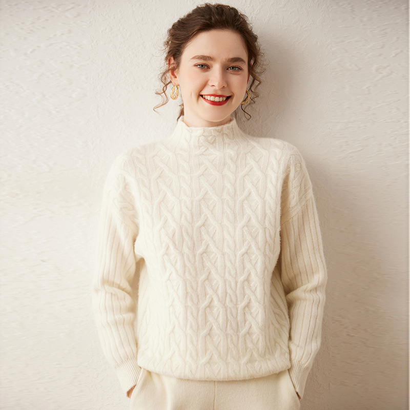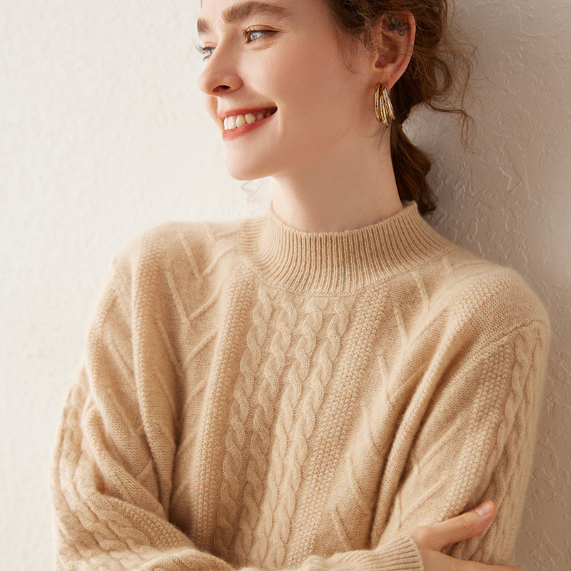 2024秋冬の新型の半高襟のカシミヤのセーターの女性のプルオーバーのセーターはゆったりとしています。