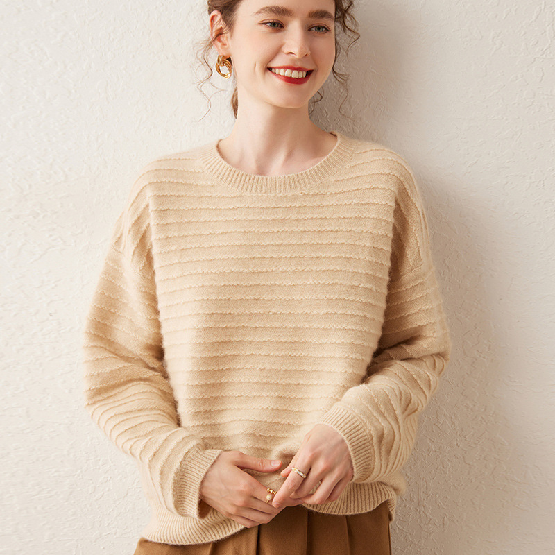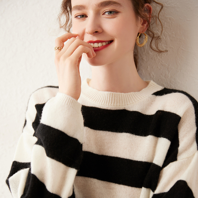 2024秋冬の新型の経典のストライプのカシミヤの底のシャツはだらだらしています。