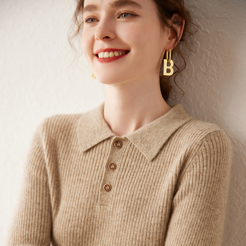 カシミヤのセーターの女性のプルオーバーのシャツの襟のニットの修身の短いプルオーバーのセーターのPoIoの襟はカシミヤの底のシャツを引き出します。
