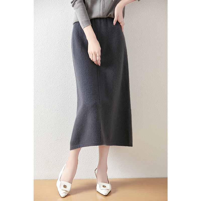2024秋冬の新型カシミヤのスカートの女性の丸首の純粋なウールのセーターの半身のスカートのメリヤスのゆったりしている2つのセット