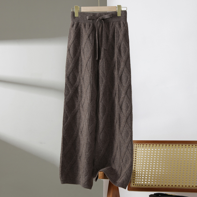 厚手のジャカード100純ウールのニットのワイドパンツの女性は秋冬の気質のカシミヤのズボンのカジュアルなストレートのズボンを着ます。