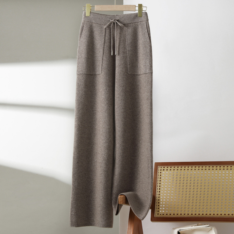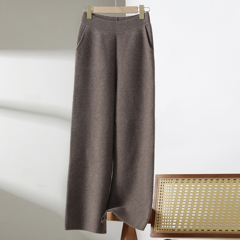 柔らかいモチモチの純粋なウールのニットのワイドパンツの女性の秋冬の高い腰の垂直感のまっすぐな筒は明らかに痩せています。