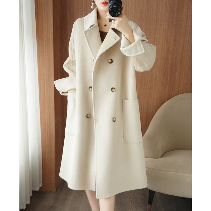 2024秋冬新作両面カシミヤコート女性ダブルボタン高級ミディアムロング100ウールラシャコート