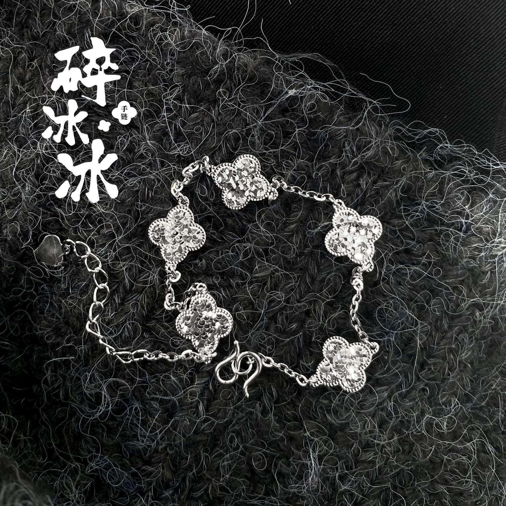 四つ葉のクローバー五花碎氷純銀ブレスレット 女性用s925 ニッチで高級感のあるアクセサリー バレンタインデーのギフトに彼女へ
