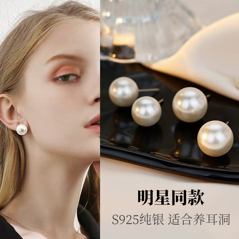 人気の s925 スターリングシルバーパールイヤリング女性の耳ピアスニッチハイエンドシェルパールイヤリングバレンタインデーのギフト卸売