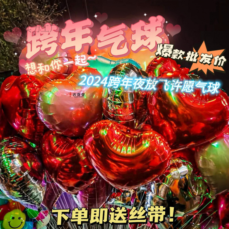 ネット紅は年を越えて夜に露店を出して空の愛の風船の寸のハート型の願い事をします。