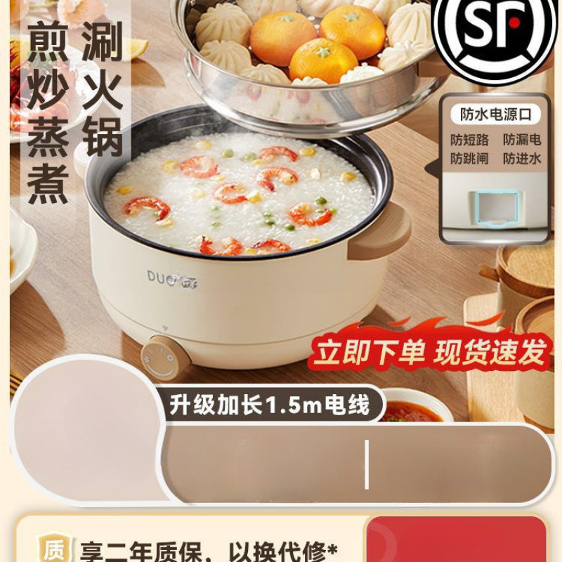 電気煮鍋寮学生鍋家庭用多機能一体電気炒め鍋小電気鍋カップラーメン電気鍋電気鍋