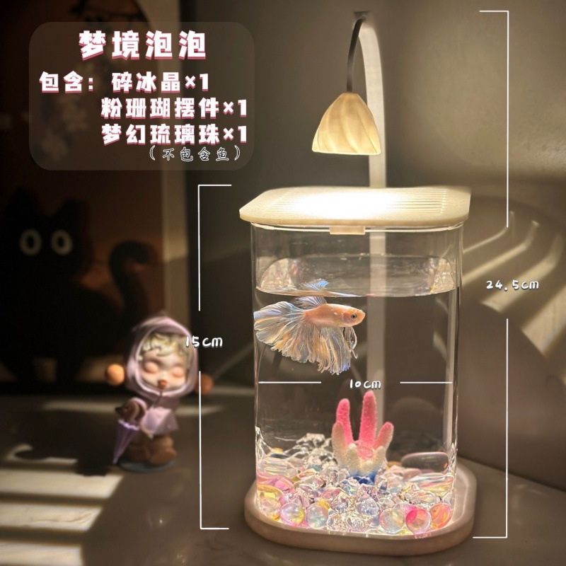 新型怠け者透明網紅タイ闘魚専用デスクトップ小夜灯創意置物小型ガラス水槽