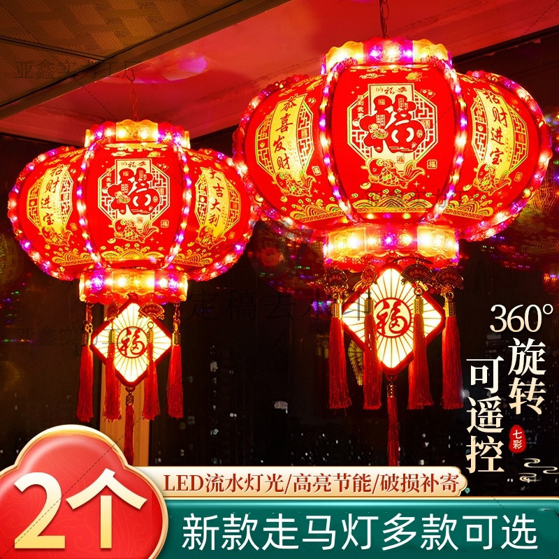 年の七色の走馬提灯が回転して水晶の福の字が飾られています。