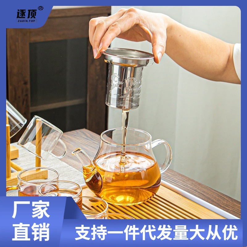 耐熱・耐高温ガラスティーセット、家庭用ティーカップ、オフィスカンフーティーセット、ティーポット、シンプルな小さなティーテーブル