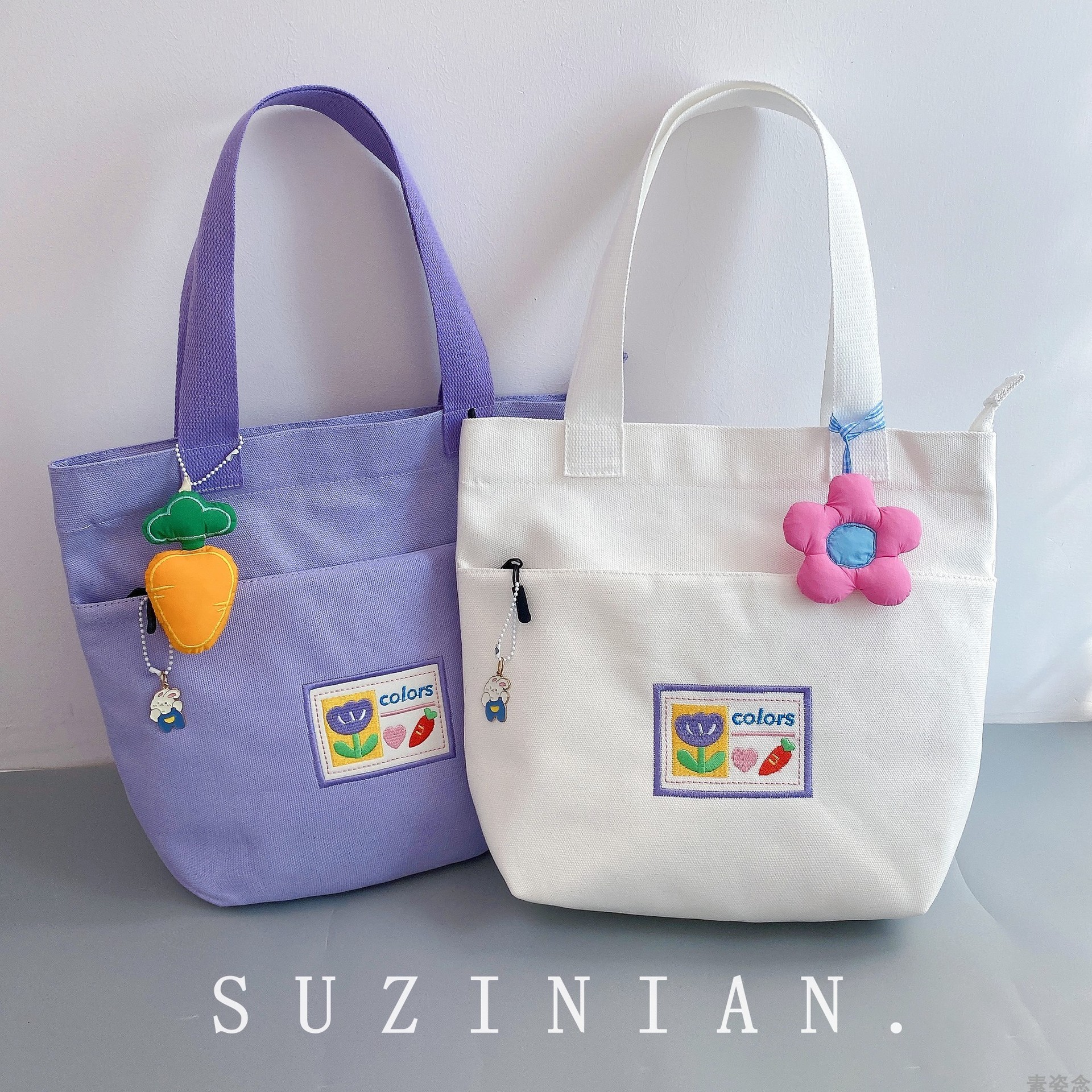 ニッチ文学 シンプル ジッパー 軽量 仕事用ハンドバッグ レディース キャンバス かわいい 学生 中学生 家庭教師 ハンドバッグ
