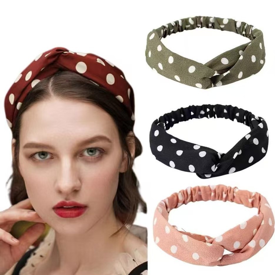 クロスボーダーの新型波点純色クロスヘアバンドのストレッチヘッドバンドの女性化粧洗顔運動ヘアバンド