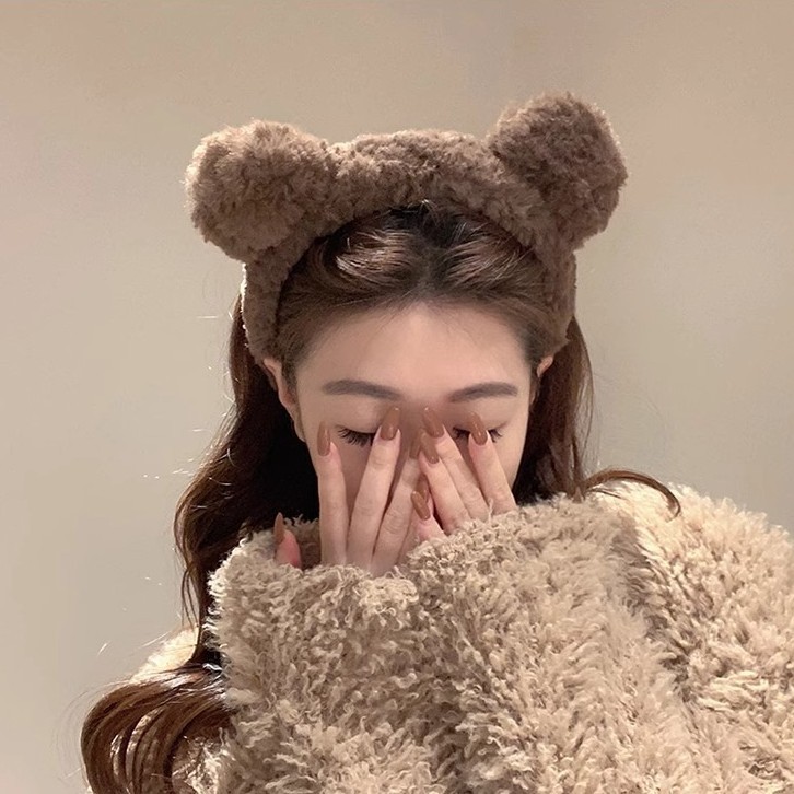 かわいい熊の髪のカチューシャのぬいぐるみの頭飾りの子供の写真を撮って、髪のカチューシャの超萌えの少女の頭のカチューシャを演じます。