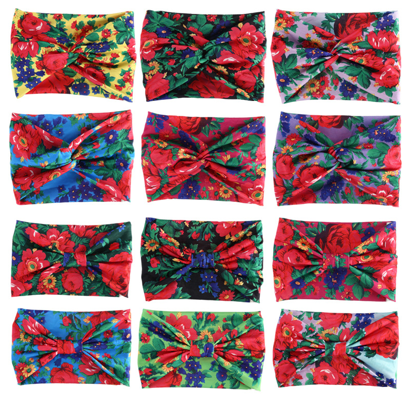 ヨーロッパとアメリカの幅広 18 センチメートルヘアバンドボヘミアンカシューフラワー弾性ターバン綿スポーツヘッドバンドヘアアクセサリー卸売