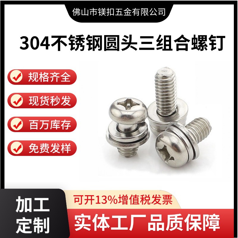 304ステンレス十字溝丸頭平弾マット三組ねじgb9074.4円頭三組ねじm 5