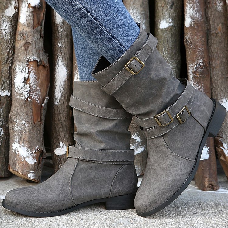 マーティンブーツの外国貿易のクロスボーダーの大きいサイズの女性の靴の欧米の2022秋冬の新型の平底の低いヒールのベルトのバックルの中筒の女性の靴