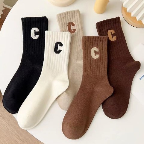 靴下の女性の韓国版の中筒の潮流の秋冬のストッキングのinsの潮は百合外にサメのズボンの長い靴下のCアルファベットの靴下を着ます。